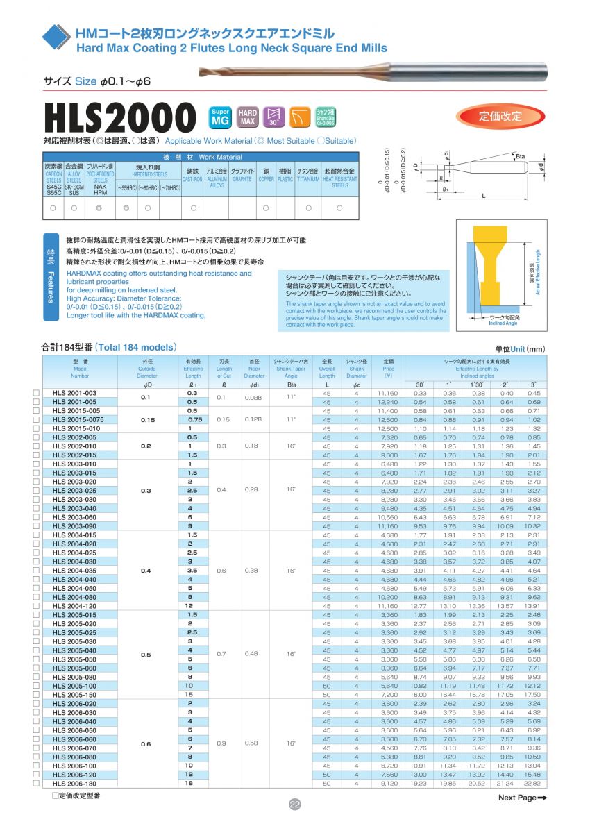 Dao phay ngón-GC sau nhiệt - Cổ dài - Loại nhỏ