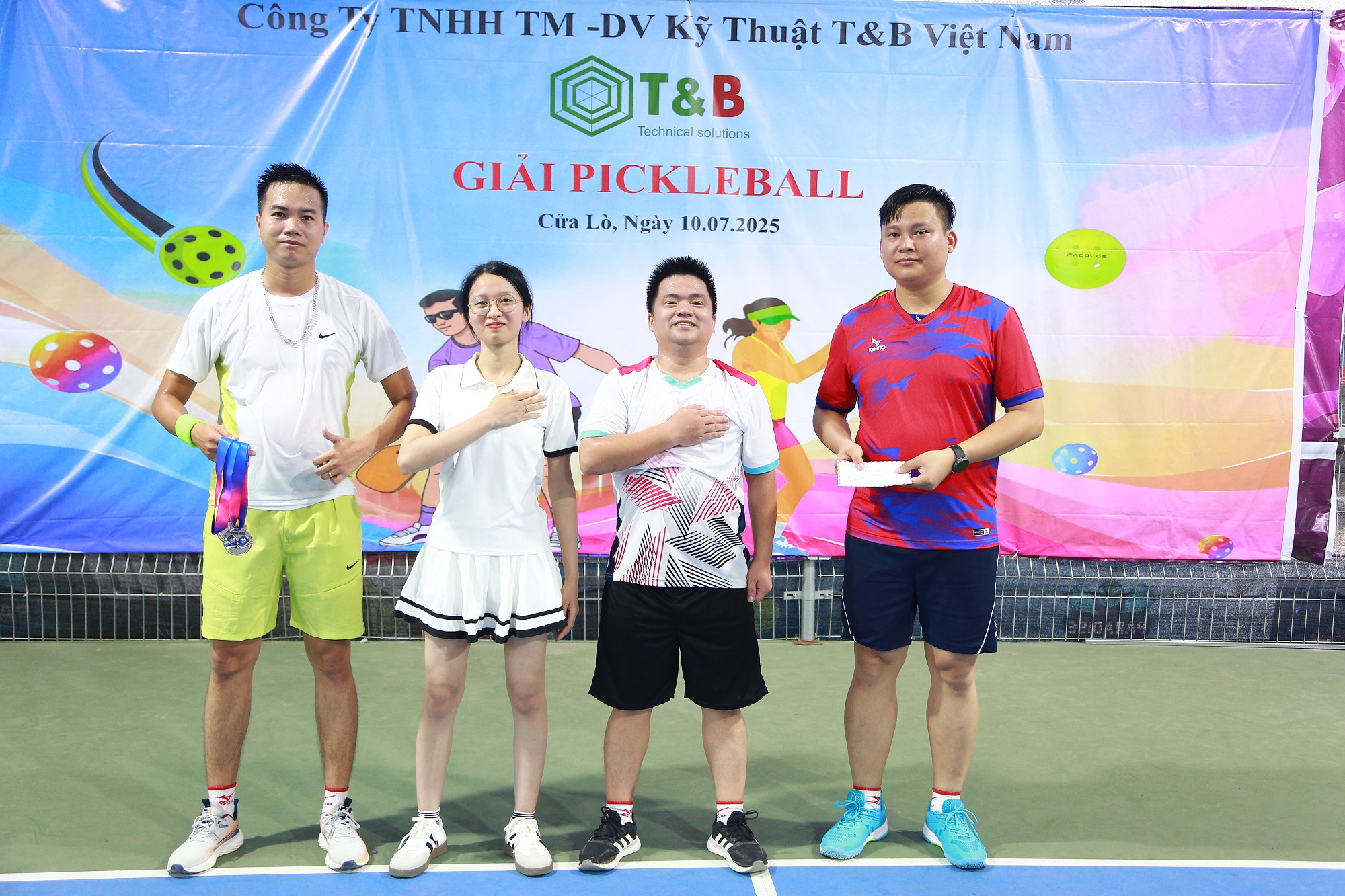 Giải đấu không chỉ là hoạt động thể thao sôi nổi mà còn là dịp để các thành viên T&B trên gặp gỡ, giao lưu, thắt chặt tinh thần đoàn kết. Pickleball – bộ môn thể thao kết hợp giữa tennis, cầu lông và bóng bàn – đã mang lại bầu không khí thi đấu vui vẻ, năng động nhưng không kém phần quyết liệt.