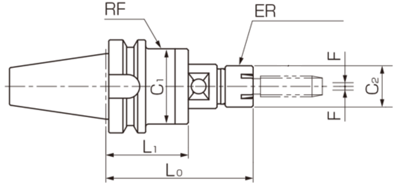 | BT40-RF414 | 100 | 58 | 51 | 28 | Radius 1.0 | M 4~M14 | ES20M | 1.8 |