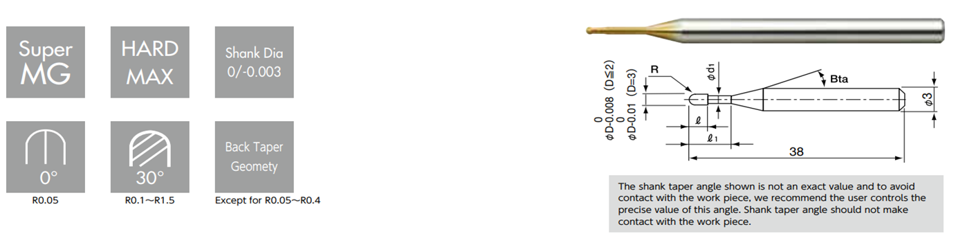 Thích hợp gia công khuôn mẫu sau nhiệt độ cứng 55-70HRC.