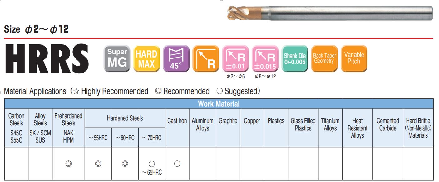 Thích hợp gia công: khuôn mẫu sau nhiệt độ cứng 40 – 65HRC.