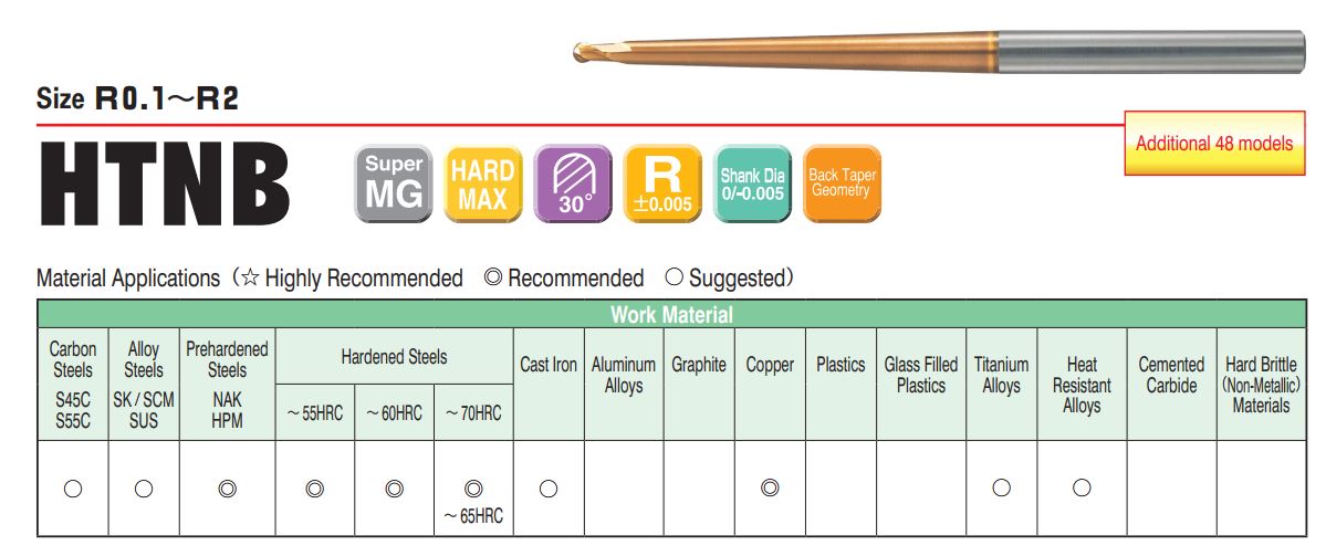 Thích hợp: gia công khuôn mẫu sau nhiệt 40HRC – 65HRC.