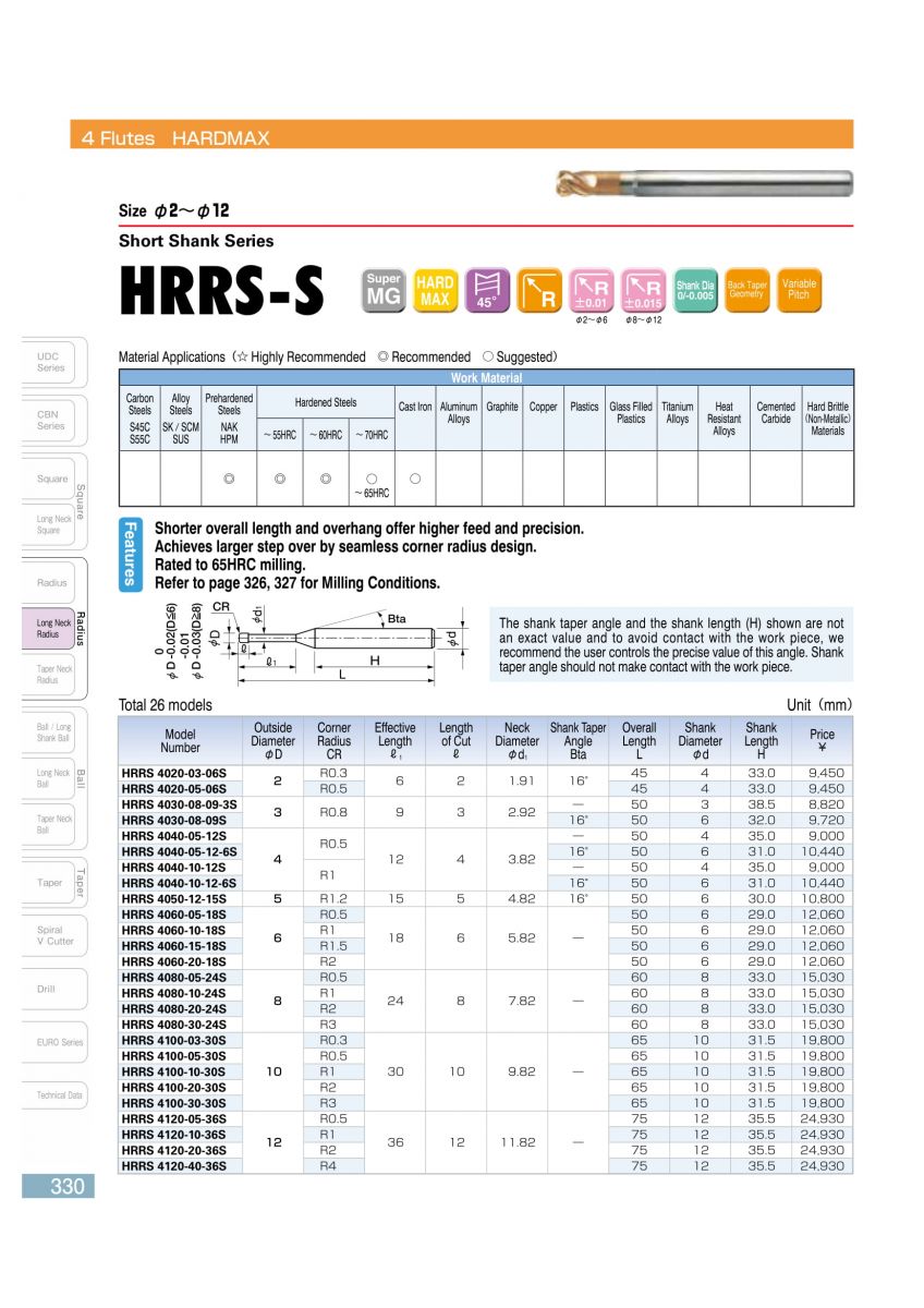 Dao phay Radius HRRS, chuyên sử dụng phá thô, gia công thép trước và sau nhiệt luyện